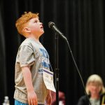 Laughter floated through the audience when Caden Scarpo of Stanwood Elementary pumped his fist in the air after spelling “temperature” correctly.