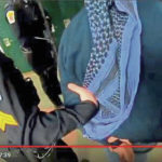 The seven-minute video shows police yelling, “Show me your hands,” and pointing their weapons at the man wearing a headdress, who had his hands raised. He is later seen being led by police down a school hallway. The man wearing the wig and scarf is seen seconds later barging into a classroom holding a gun.