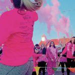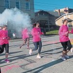 High-powered 1970s and ’80s pop tunes and neon pink were the order of the day as runners and walkers lined up, and Seton Hill University student volunteers took their spots along the course to shower 174 participants with colored corn starch. Thirty-six local businesess helped sponsor the 5K, and volunteers from Seton Hill University, borough police, fire and medics, Mt. Pleasant High School, Passavant Memorial Homes and the community pitched in.