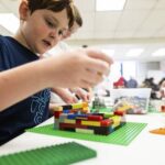 Declan Duckett, 8, of North Huntingdon, focuses on his Lego build on Feb. 17 during the inaugural community Lego building event at First Presbyterian Church in Irwin.