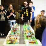 Organizer Keith Harmon (back right) laughs as all the final creations are combined to form a town on Feb. 17 during the inaugural community Lego building event at First Presbyterian Church in Irwin.