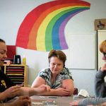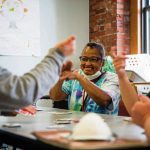 On a recent Monday, clients were playing the card game UNO. They were smiling and having a good time. One of them shared her thoughts on the art class. Three of her paintings — a flower, a ladybug and an Easter egg — were displayed on the wall. She said the life skills program makes a big difference in her life.