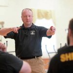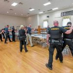 Karl Dear was hired for approximately $2,000 by Sheriff James Albert’s office to conduct five, three-hour training assemblies in groups of 10 to 14 deputies per session through Friday. Chief Deputy Sheriff John Rock, a Crabtree resident and St. Bartholomew parishioner, made arrangements for the department to host the training at the hall — normally a site for traditional wedding receptions, luncheons and bingos.