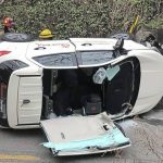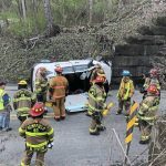 The driver, a woman who was not identified, had to be freed from the vehicle, which overturned at the western entrance of the railroad tunnel near Berger Street, said Greg Saunders, a Bovard firefighter.