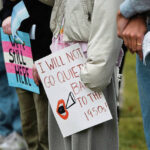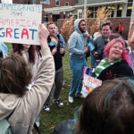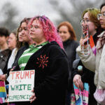 Huddled on the muddy lawn of the campus, the group protested recent executive orders restricting transgender health care, reversing immigration policies from former President Joe Biden’s presidency and abolishing diversity, equity and inclusion initiatives.