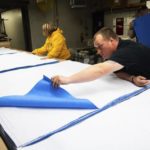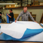 “Every morning, I go down there and pick up 200 or 300 of them and bring them back here where we glue the seams, fold them and put 50 to a box,” Byers said.