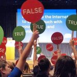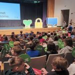 In teaching students about being careful who they share photos and videos with, or example, they illustrated the speed at which information can spread online by handing a photo to a student in the front row, only to reveal that the same photo was taped to the chairs in half the middle-school auditorium.