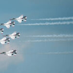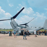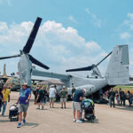 Along with the returning USAF Thunderbirds, a new highlight of the air show this year is the USMC MV-22B Osprey, a plane that can take off vertically like a helicopter.