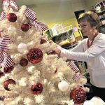 Greensburg Garden Center co-president Carla Rusnica decorates a tree for the center’s Dec. 3-4 Christmas sale.