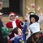 Thousands of people gathered downtown Saturday afternoon to celebrate the holiday season as floats, bands and groups from local organizations traveled along Main Street. A visit by Santa and Mrs. Claus capped off the event.