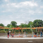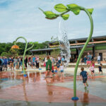 Trees replanted from the property prior to construction were relocated at the park and the facility’s splash area for children, a water table play area and circulating stream utilize recirculated water.