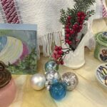 Work from more than 20 area artists is represented in a variety of media, including wall art, pottery, sculpture, fabric art, costume and fine jewelry and more. Holiday and winter-themed items range from rustic snowmen painted on wood to delicately crafted pysanky eggs.