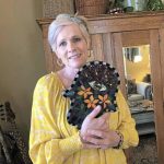 “I got bored making them, because you have to follow instructions and stay inside the lines, and I don’t like to do either one,” she said. “I had a bucket of scrap glass under my work bench and I had four terra cotta pots, and I thought, I’ll try this mosaic thing.