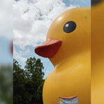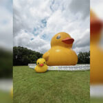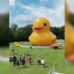 Wiarda said the giant duck was set up Thursday, and Croushore said it takes about an hour and 15 minutes to inflate. It’s deflated every night in case of bad weather, Wiarda said.