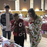 Concetta Constantine, 21, of Jeannette, right, Marley Perpone, 16, of Greensburg, middle, and Rocco Himes, 16, of Greensburg, left, purchase cookies at the Sparkle of Christmas celebration in Jeannette on Saturday, Dec. 7, 2024.