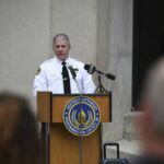 Lower Burrell police Chief John Marhefka speaks during a Westmoreland County Law Enforcement Memorial Service outside the Westmoreland County Courthouse on Thursday.