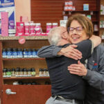 Nicole Gonder, who works at Mainline, gave hugs to customers as they picked up their bags of medication at the counter. She has worked there for 29 years.