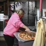 Owner Anita Iannuzzo slices a pizza for a to-go order at Monday’s Union Restaurant in Unity on Tuesday, Dec. 10, 2024 as the establishment reopens following a sinkhole accident behind the property last week. Elizabeth Pollard was looking for a cat last Monday evening when the ground gave way under her and she fell into a sinkhole that opened into an abandoned mine. The 64-year-old Unity resident died.