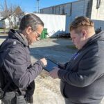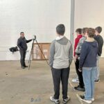 Mark Dietrick, left, director of services for consultant Case Technologies, explains his company’s digital scanning technology to Mt. Pleasant Area High School junior Marcus Kocevar duiring an October 2023 visit by school students to the former L.E. Smith Glass plant in Mt. Pleasant.