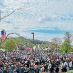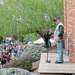 At 12:30 p.m., Lawrence stood on a wooden platform in front of the church to address the crowded parking lot. He began the blessing by wishing for everyone’s safety. He also celebrated the sunny weather despite the forecast of all-day rain.