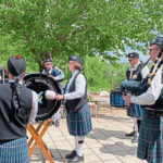 The Laurel Highlanders Pipes and Drums perform “Amazing Grace” on Saturday, May 11, 2024, during a ceremony at Ligonier Valley Cemetery dedicating a nearby Ligonier Township bridge to Congressional Medal of Honor recipients Staff Sgt. Alvin P. Carey, who was killed in action in World War II, and Civil War veteran Pvt. John C. Ewing. Both are buried at the cemetery.