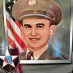 An artist’s portrait of Congressional Medal of Honor recipient Staff Sgt. Alvin P. Carey, who was killed in action in World War II, is displayed on Saturday, May 11, 2024, during a ceremony at Ligonier Valley Cemetery. The ceremony was held to dedicate a nearby Ligonier Township bridge to Carey and a fellow medal recipient, Civil War veteran Pvt. John C. Ewing. Both are buried at the cemetery.