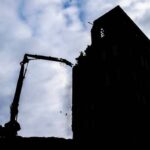 “It’s coming down, I think, smoother than anticipated,” said senior project manager Hallie Chatfield from inside a warm SUV. She will be at the site during the tower demolition.