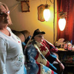 Around the shoulders of this World War II veteran was draped a special quilt, a Quilt of Valor presented to him because he was involved in a war.