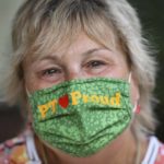 Jeanie Grupp, a personal care assistant, wears a “PT Proud” mask as she waits for her students in the Life Skills program to arrive on the first day of school at Penn-Trafford School District’s McCullough Elementary on Thursday, Aug. 27, 2020.