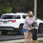 Nicole Cianciotti hugs her son Bentley Cianciotti, a fourth grader, as she drops him off for the first day of school at Penn-Trafford School District’s McCullough Elementary on Thursday, Aug. 27, 2020.