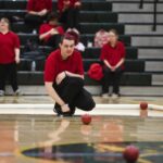 Judging the finesse needed to send a ball on the ideal trajectory to land in a winning position can be difficult — particularly since each of the school gyms where matches normally are held has a floor with some unique qualities. That’s why teams get a 15-minute warmup to become familiar with the playing surface.
