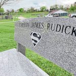 A memorial bench along the side of the pond bears Carson’s name and a Superman logo.