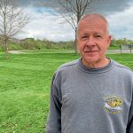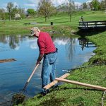 Bob Sturn of Penn Township, grandfather of Carson Rudick, clears debris from the pond at Penn Township Municipal Park on Friday ahead of this Sunday’s fishing derby in Carson’s memory.