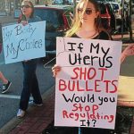 They held up signs, chanted slogans such as “2-4-6-8 separate the church and state” and “my body my choice, your body your choice.”