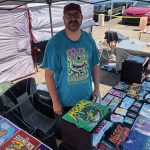 Cryptoteeology owner Joe Fogle of Johnstown poses for a photo inside his booth at the Kecksburg UFO Festival on Saturday, July 23, 2022.