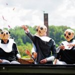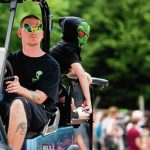 Extraterrestrials throw candy to the crowd and they enjoy a parade Saturday, July 23, 2022 during the Kecksburg UFO Festival.