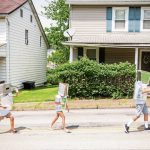 Kecksburg aliens toss candy to kids along the parade route during the Kecksburg UFO Festival on Saturday, July 23, 2022.