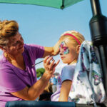Face painting artist Wendy Smith of Derry creates a design for Chloe Hantz, 6, of Latrobe, while she was visiting Latrobe Police Department’s National Night Out with her family on Thursday, Aug. 22, 2024 at Memorial Stadium in Latrobe.