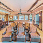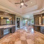 The main kitchen has two dishwashers, two refrigerators, two ovens, two beverage refrigerators, a six-burner stove, a built-in griddle and pot filler. The secondary kitchen, located off the nine-seat theater in the downstairs area, has a built-in bar and wine room.