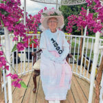 Canose portrayed the 1890s in an exquisite pink gown she made with lace detailing and a pink sash, topped with a flower-adorned hat. She described herself as a fourth-generation seamstress.