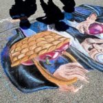 Fair attendees admire the chalk art of Erik Greenawalt of North Huntingdon, who goes by "The Chalking Dad" during an earlier Scottdale Fall Festival.