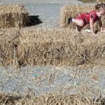 Piper Davis, 3, of New Stanton plays on hay bales near the music stage during an earlier Scottdale Fall Festival.