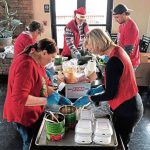 Edmiston was among a group of about 40 volunteers who took the early shift packing meals that were delivered either to homes or to local Salvation Army units for distribution. A second group took over in the afternoon.