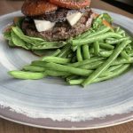 Dave Cassler, who owns the restaurant with his wife, Carol — thus the Carol & Dave’s — call it their speciality. It is their “knife and fork burgers,” so-named with good reason. These are a half a pound of beef without buns — topped with a whole lot of other tasty food. Both are served with a healthy side of green beans.