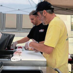 From the left, Alex Blystone and Chris Stewart of Valley Dairy were hard at work preparing banana splits at the Great American Banana Split Celebration on Saturday, Aug. 26, 2023, in downtown Latrobe.