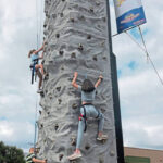 Children try their hand at a climbing wall during the Great American Banana Split Celebration on Saturday, Aug. 26, 2023, in downtown Latrobe.