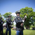 The ceremony for Wiegel included the laying of wreaths and a gun salute by the reenactors. It followed Irwin’s Memorial Day parade and a traditional service, held near the entrance to Union Cemetery.