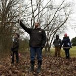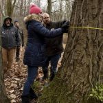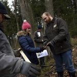 Two residents and several Brandywine Conservancy members learned how to use Biltmore Sticks and wedge prisms to find a tree’s volume, diameter and basal area. The tools help private landowners decide which trees can be used in timber sales and how many usable, 16-foot logs can come from a tree.