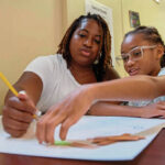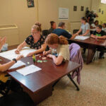 Tanesha Anderson of Monessen and her daughter, Jadynn, 11, draw a family tree Tuesday during a meeting with Latika Davis-Jones, secretary of the Pennsylvania Department of Drug and Alcohol Programs, as well as substance use disorder treatment providers, area health care professionals, local elected officials and individuals with lived experience at the Monessen Family Center.