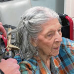 Will and Bailey Legge, a Derry Area High School junior, got to learn about June Ashton as they respectively applied blush to the cheeks and curled the locks of the 102-year-old Army veteran.